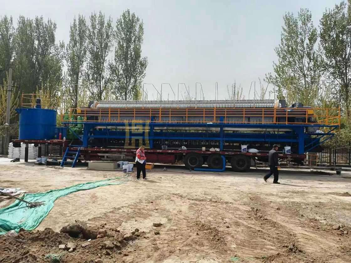 北京市中交隧道局600平方車載式壓濾機使用現場