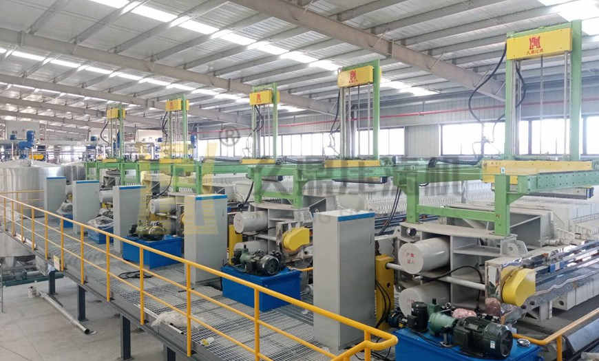 2、壓濾脫水系統(tǒng)由高壓隔膜壓濾機、污泥進料(進泥)系統(tǒng)、二次壓榨系統(tǒng)、卸泥存儲系統(tǒng)、氣源系統(tǒng)、自控系統(tǒng)等組成。壓濾脫水系統(tǒng)的關(guān)鍵設(shè)備采用隔膜壓濾機,調(diào)質(zhì)后的污泥通過兩級進泥泵(一級快速進泥,二級將污泥固化成型)輸送至壓濾機壓濾脫水,再通過高壓壓榨泵進行加壓脫水,進一步降低含水率。之后利用高壓空氣吹掃壓濾機進泥管中的污泥及泥餅表面的表面水,讓污泥濾餅更容易脫落。脫落后的濾餅進入電動儲泥斗暫時緩存,污泥車進入脫水間一層,打開污泥料斗,污泥在重力作用下進入污泥車運走。