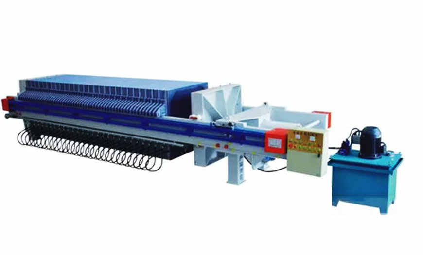 程控自動拉板隔膜壓濾機是借助機、電以及液壓進行一體化設計的,具有結構合理、操作簡單、使用安全且維護方便的特點。