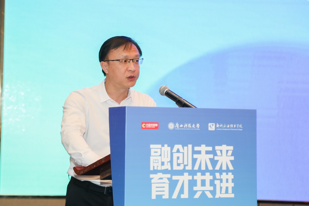 大自然家居(中國)有限公司董事、常務(wù)副總裁佘嘉浚,代表共同體牽頭單位進(jìn)行了發(fā)言。佘嘉浚指出大自然家居作為行業(yè)頭部企業(yè),在家居領(lǐng)域擁有30年經(jīng)驗,專注于綠色健康家居產(chǎn)品的研發(fā)、生產(chǎn)和銷售,在國內(nèi)有超過5000家線下門店。品牌價值在2023年達(dá)到876.12億元(由亞洲星云品牌管理(北京)有限公司評定)。大自然家居在國內(nèi)柳州、鹿寨等地布局了6個大型生產(chǎn)基地,在國外東盟柬埔寨、南美秘魯、非洲加蓬、歐洲法國、波蘭等國家布局有大型生產(chǎn)基地,有超過10萬生產(chǎn)、服務(wù)和技術(shù)工人。作為家居頭部企業(yè),知責(zé)于心、擔(dān)責(zé)于身、履責(zé)于行,積極響應(yīng)國家政策,牽頭行業(yè)產(chǎn)教融合共同體的建設(shè),旨在培養(yǎng)更多適應(yīng)產(chǎn)業(yè)發(fā)展需要的高素質(zhì)人才,同時賦能區(qū)域經(jīng)濟(jì)和家居行業(yè)的發(fā)展。