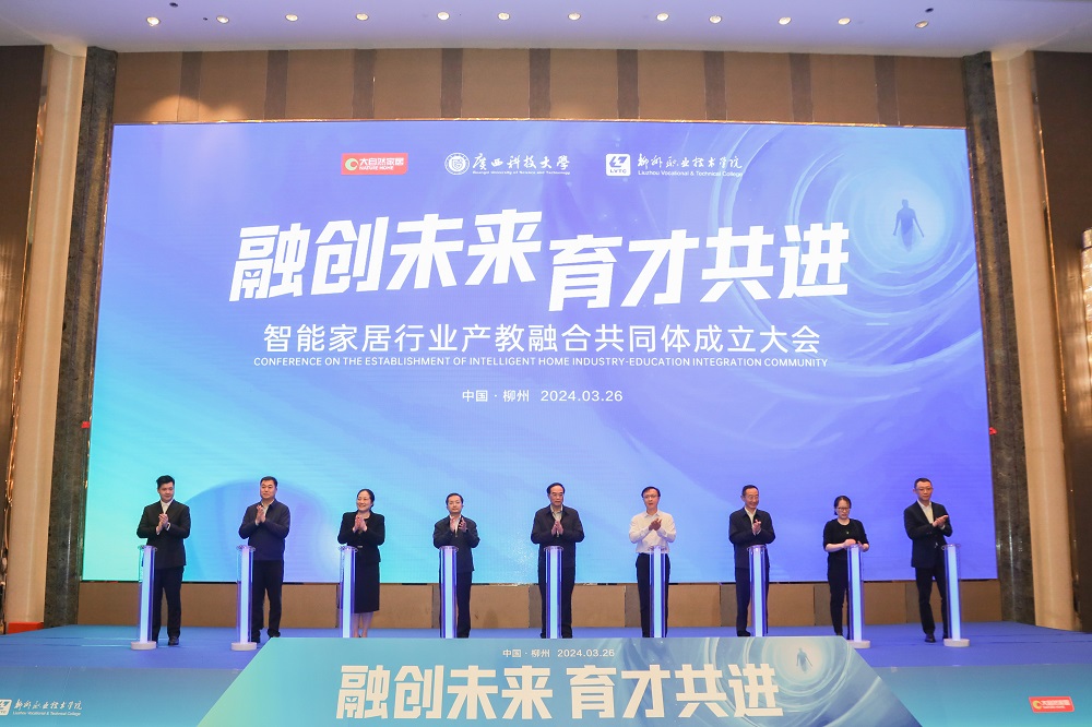 2024年3月26日,由中國林產(chǎn)工業(yè)協(xié)會、廣西壯族自治區(qū)工業(yè)和信息化廳、廣西壯族自治區(qū)林業(yè)局指導(dǎo),大自然家居(中國)有限公司、廣西科技大學(xué)和柳州職業(yè)技術(shù)學(xué)院牽頭,聯(lián)合行業(yè)組織、科研機(jī)構(gòu)、學(xué)校以及企業(yè)等68家單位,發(fā)起的“融創(chuàng)未來、育才共進(jìn)” 智能家居行業(yè)產(chǎn)教融合共同體(以下簡稱“共同體”)成立大會在廣西柳州隆重舉行。大自然家居(中國)有限公司、廣西科技大學(xué)、柳州職業(yè)技術(shù)學(xué)院為理事長單位,中國林業(yè)科學(xué)研究院木材工業(yè)研究所、廣西大學(xué)、廣東萬和電器集團(tuán)等為副理事長單位,柳州工學(xué)院、柳州城市職業(yè)學(xué)院、廣西豐林木業(yè)集團(tuán)等作為會員單位,多方合作,旨在推動智能家居產(chǎn)業(yè)發(fā)展,促進(jìn)產(chǎn)學(xué)研深度融合,培養(yǎng)高素質(zhì)人才,推動行業(yè)創(chuàng)新發(fā)展。