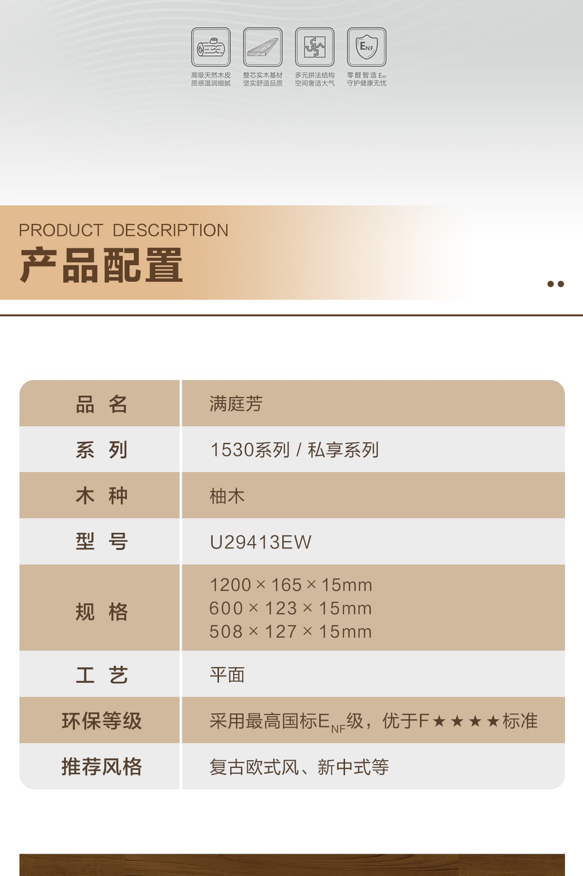 | 獨(dú)特工藝 | 芯實(shí)木 |