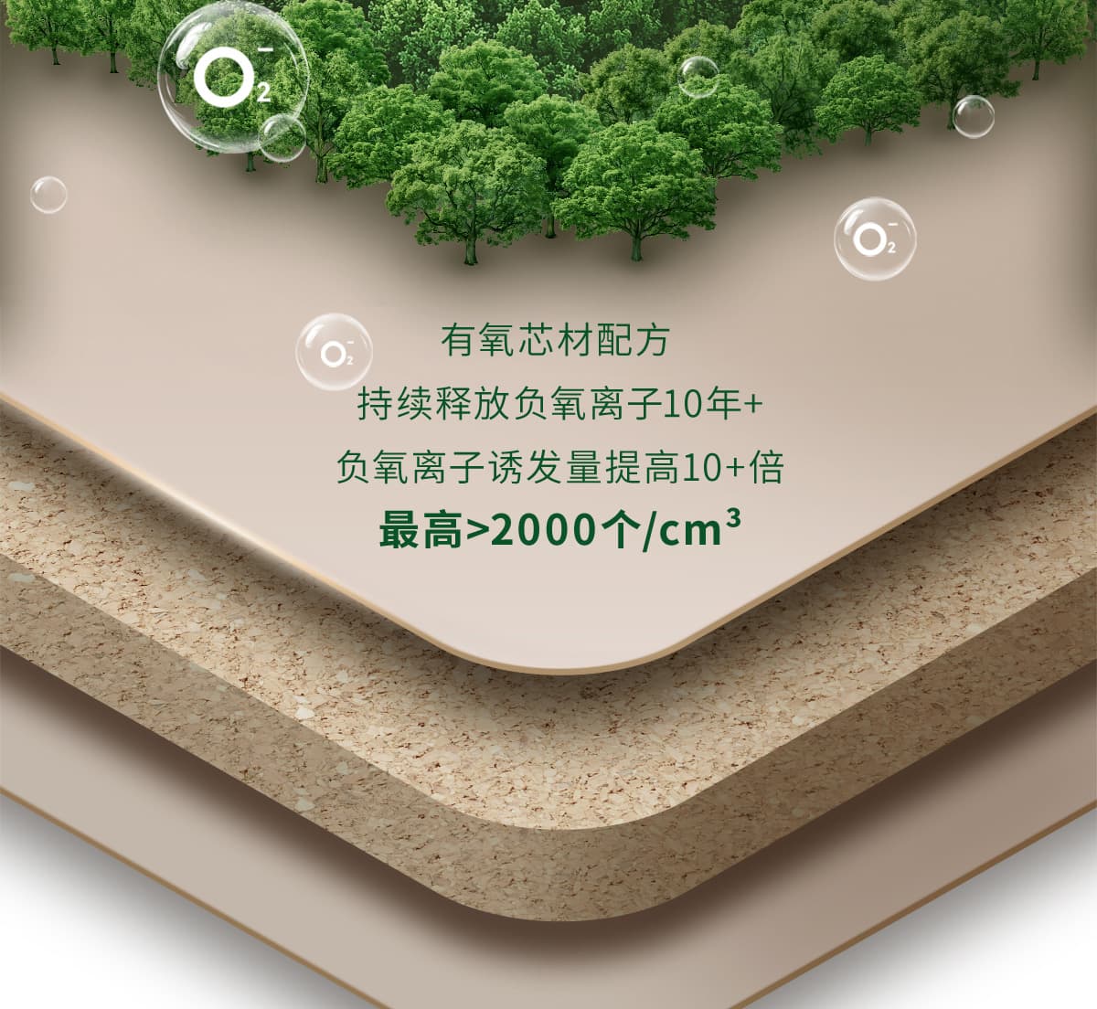 誘發空氣負離子量 比基礎環境提高10倍+
