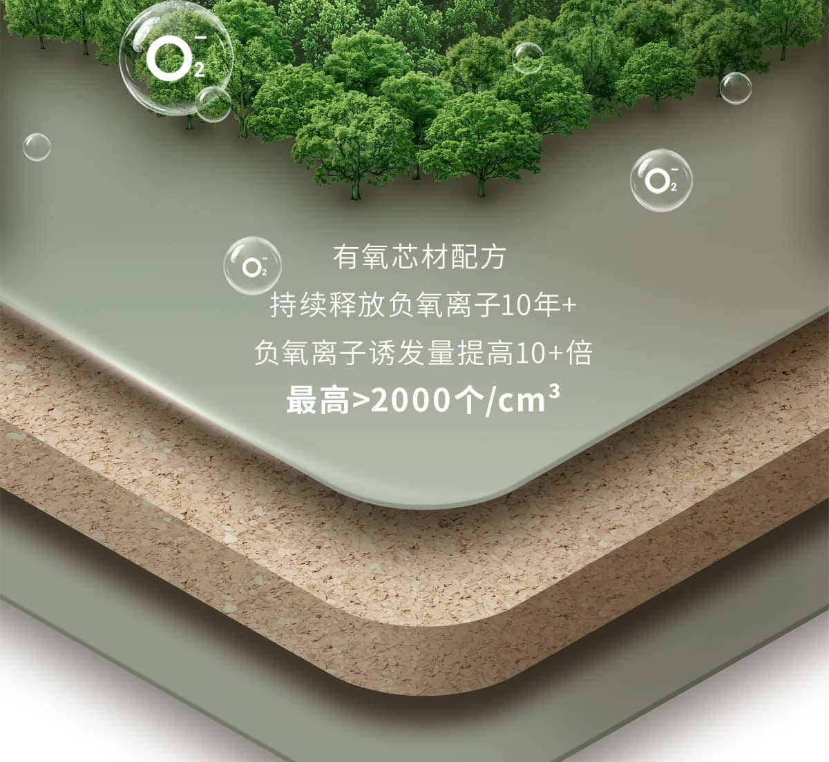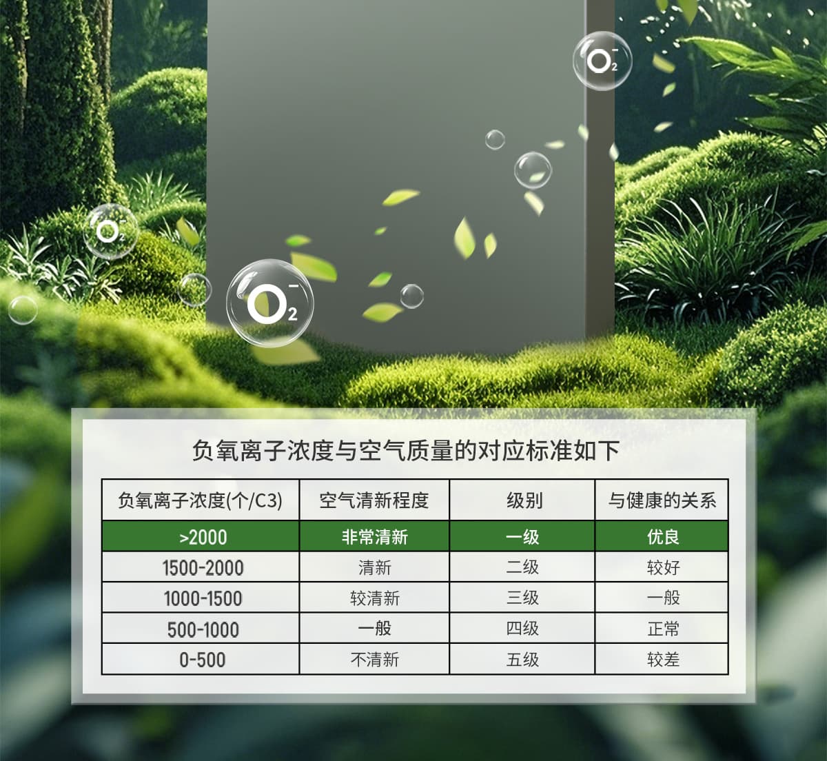 誘發空氣負離子量 比基礎環境提高10倍+